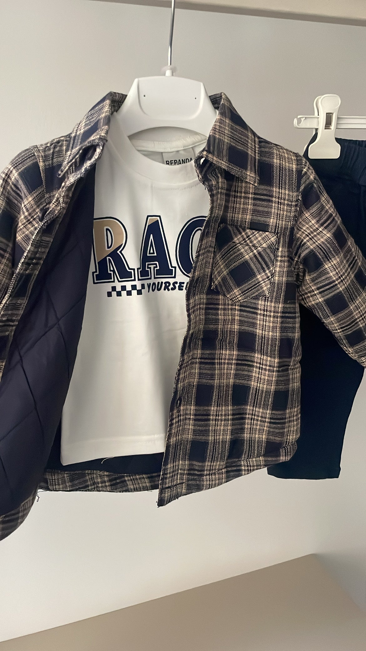 camicia trapuntata, con maglia felpata all'interno e jeans