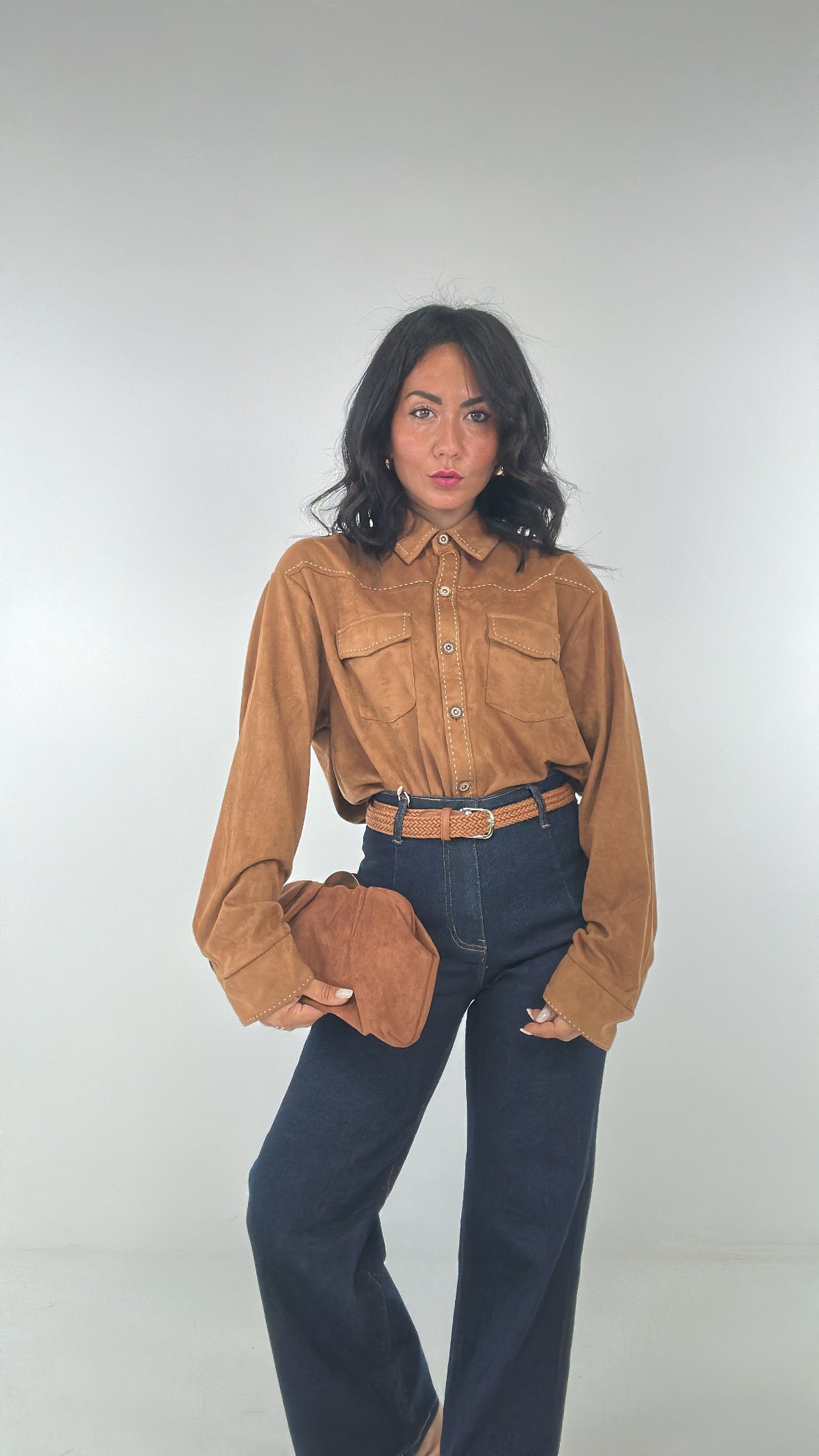 Borsa CLUTCH IN CAMOSCIO - CAMMELLO