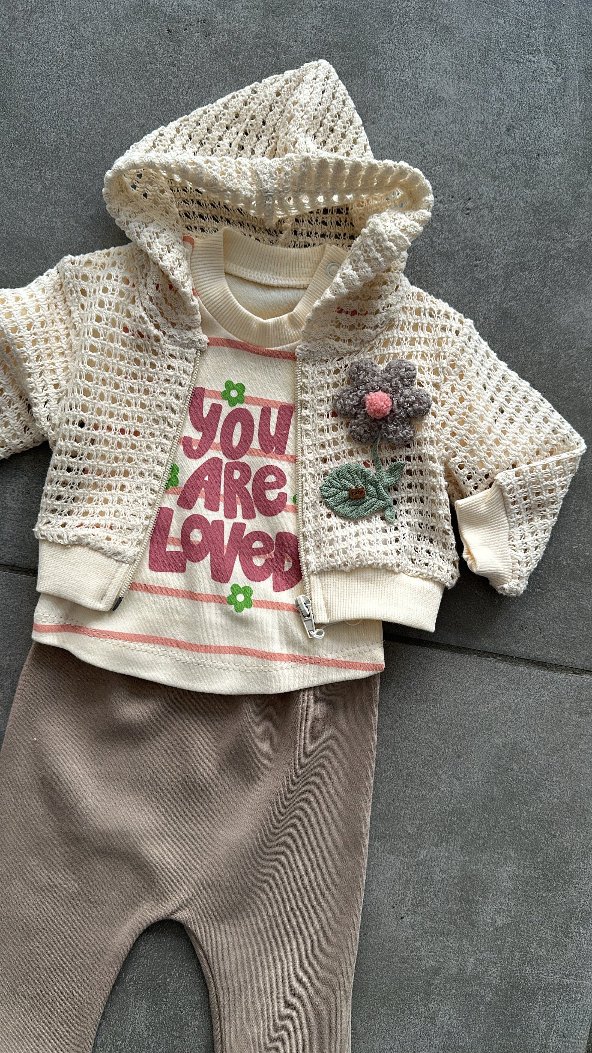 Cordinato 3 PZ CON FIORE RICAMO 0-9M - BEIGE