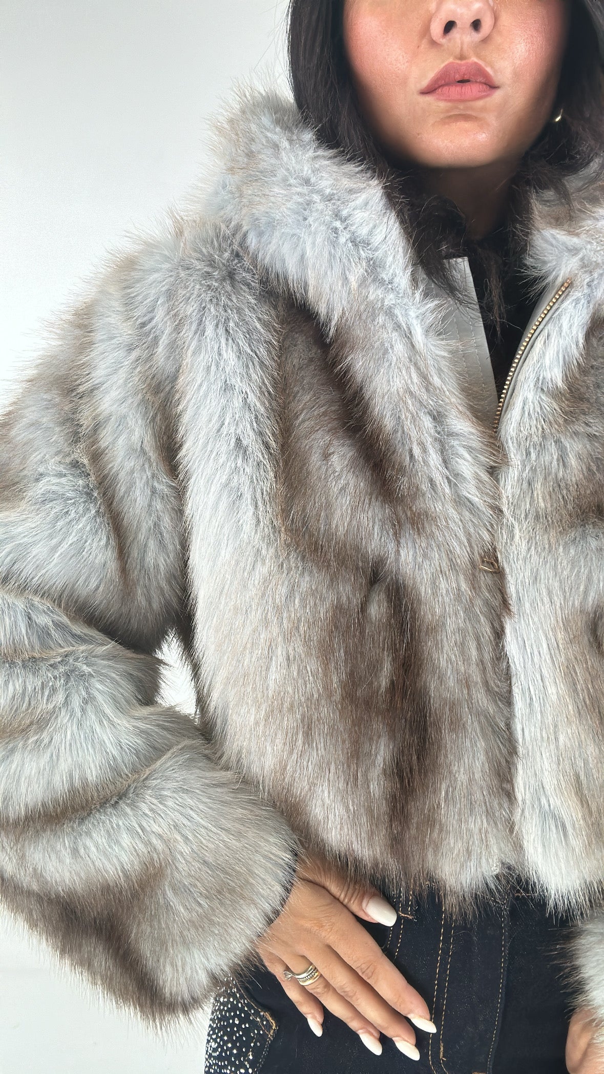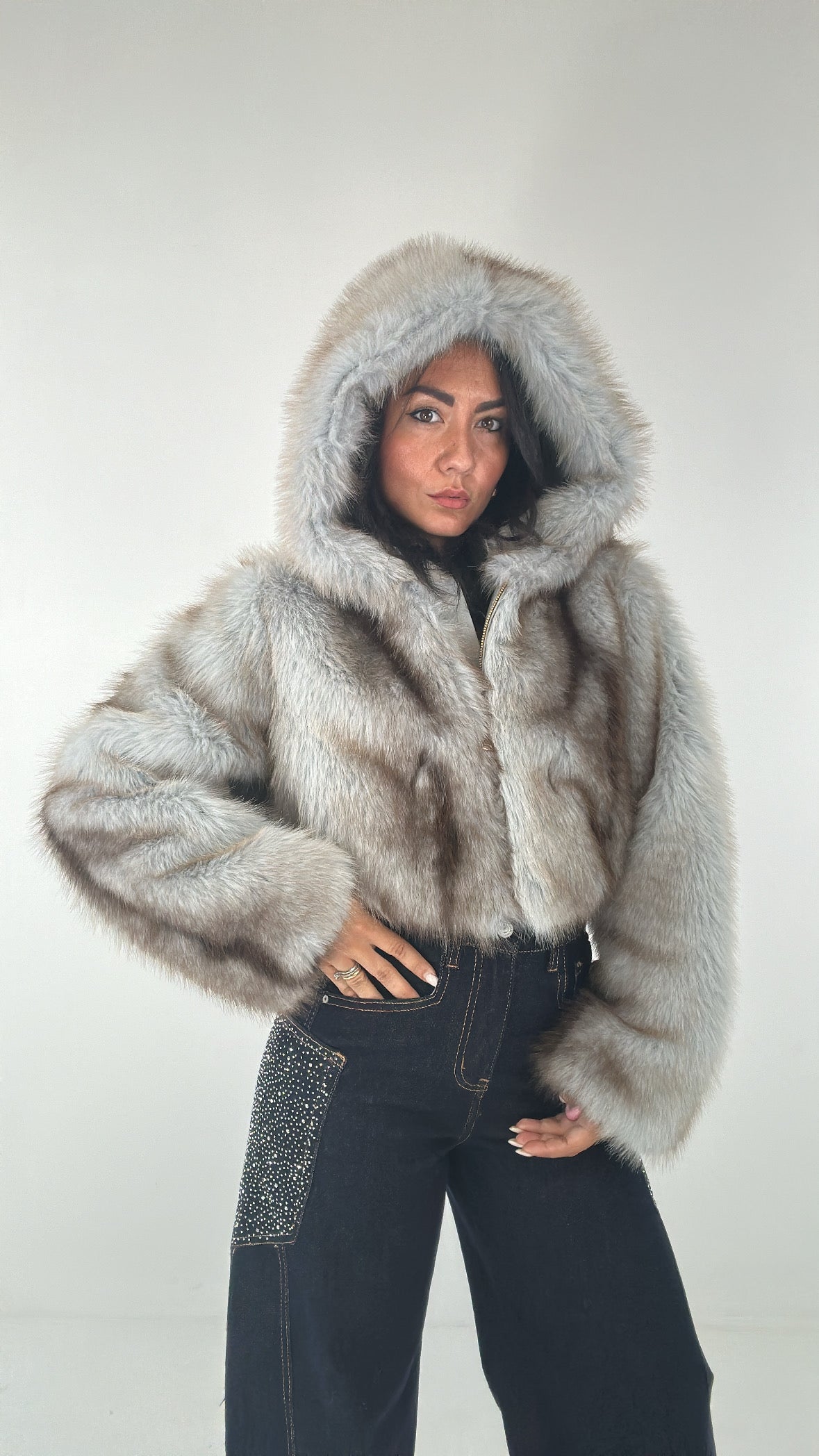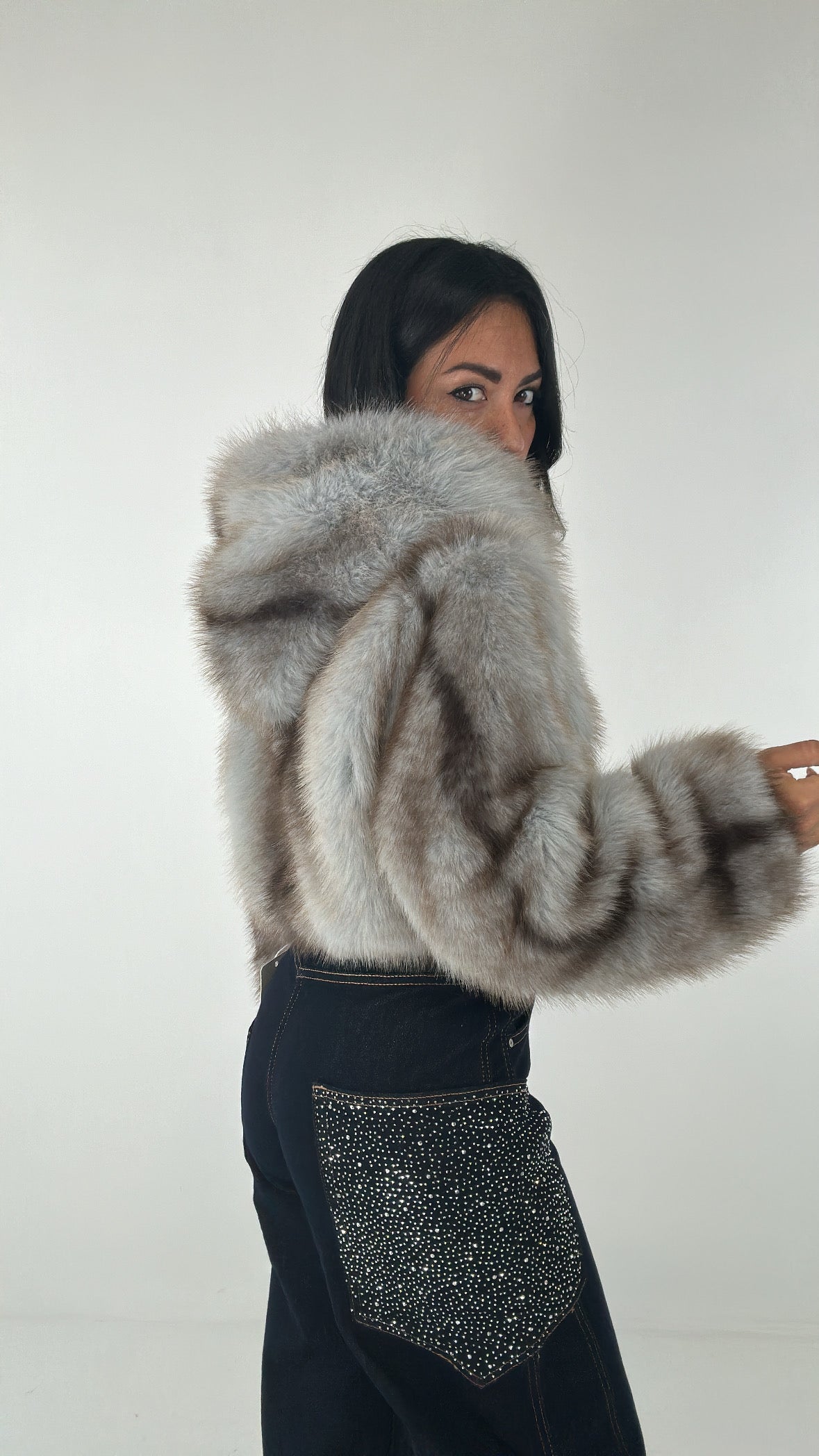 Ecopelliccia CROP CON CAPPUCCIO - MARRONE