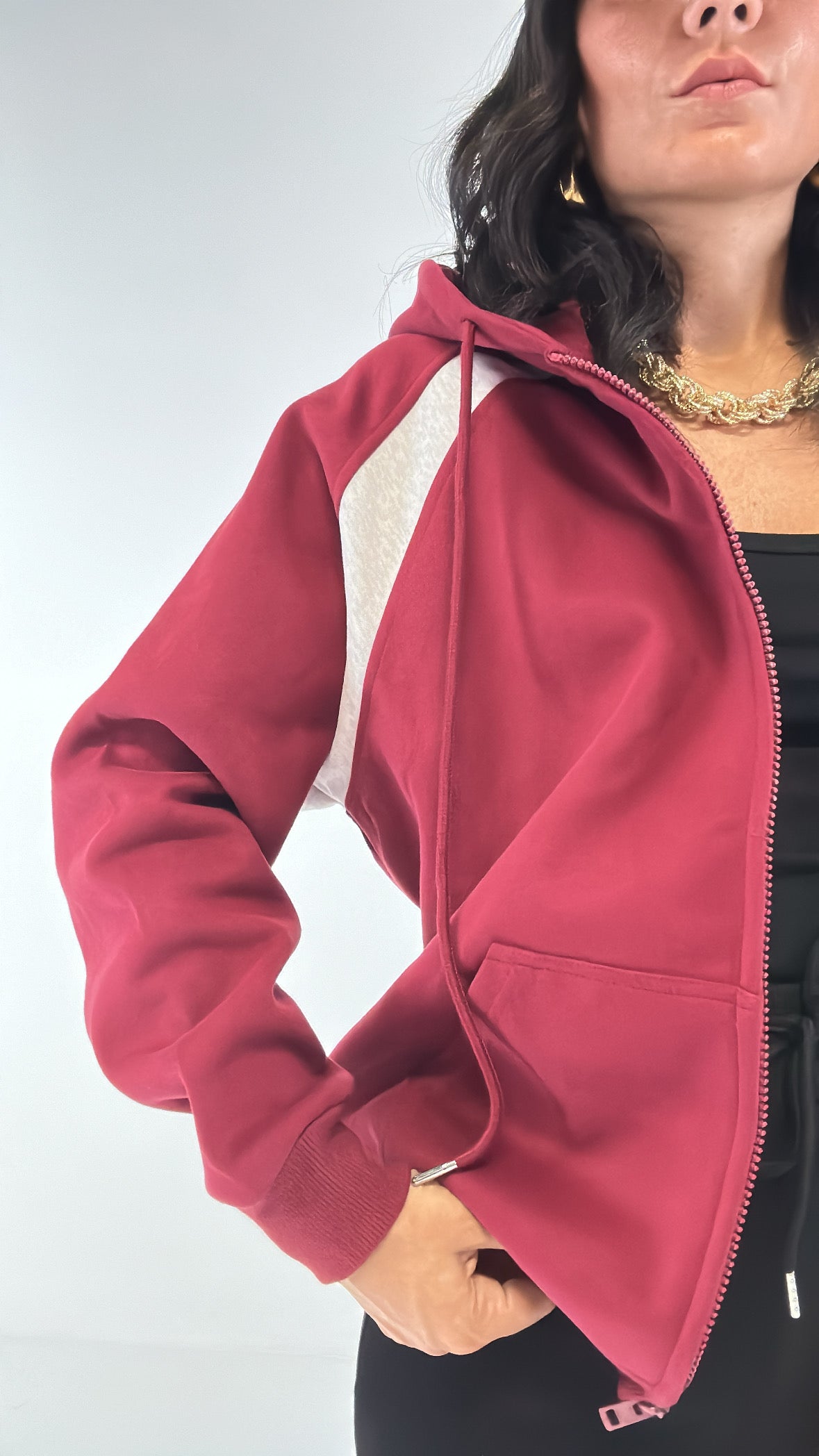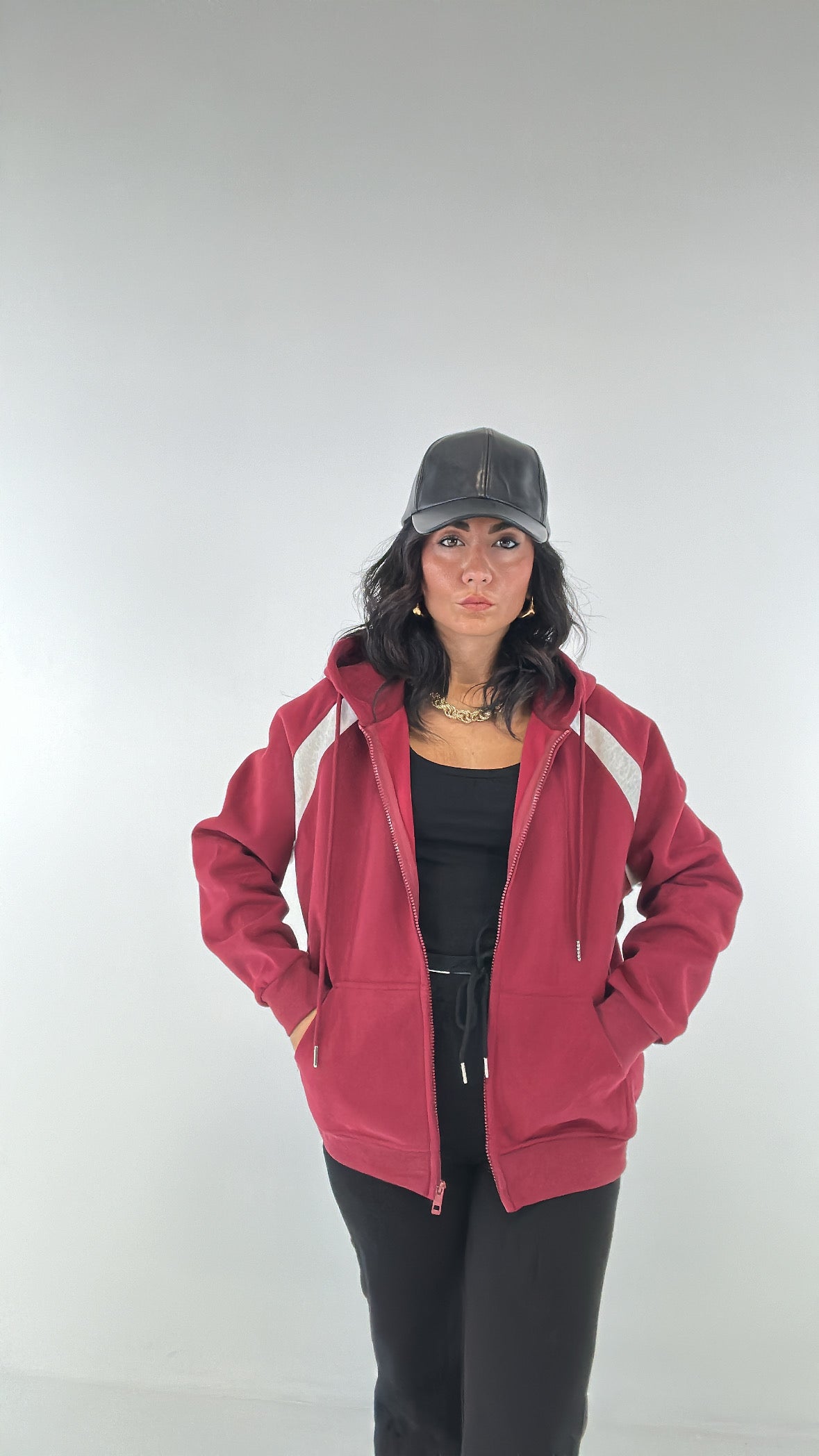 Felpa CAPPUCCIO E CERNIERA - BORDEAUX