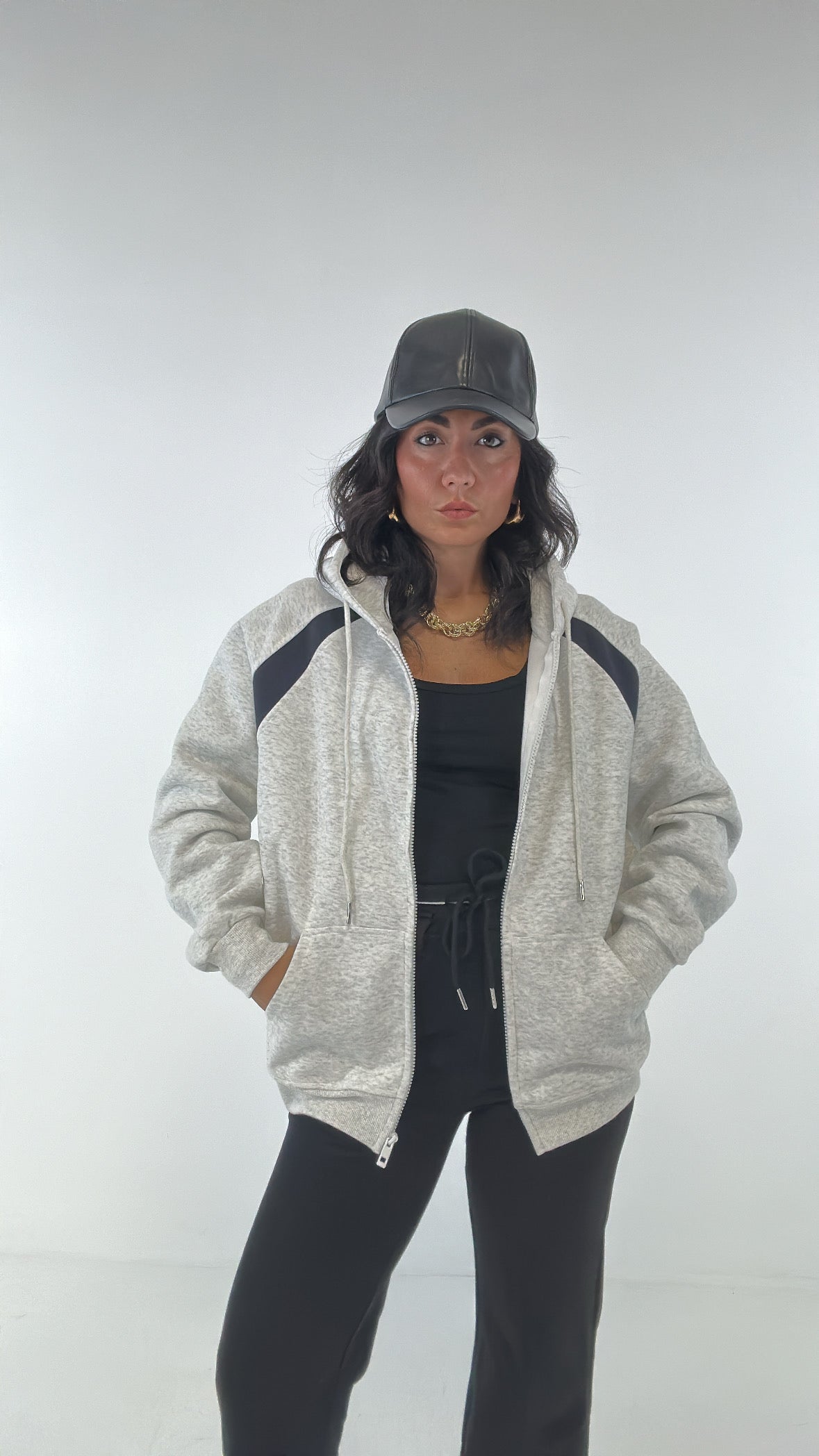 Felpa CAPPUCCIO E CERNIERA - GRIGIO