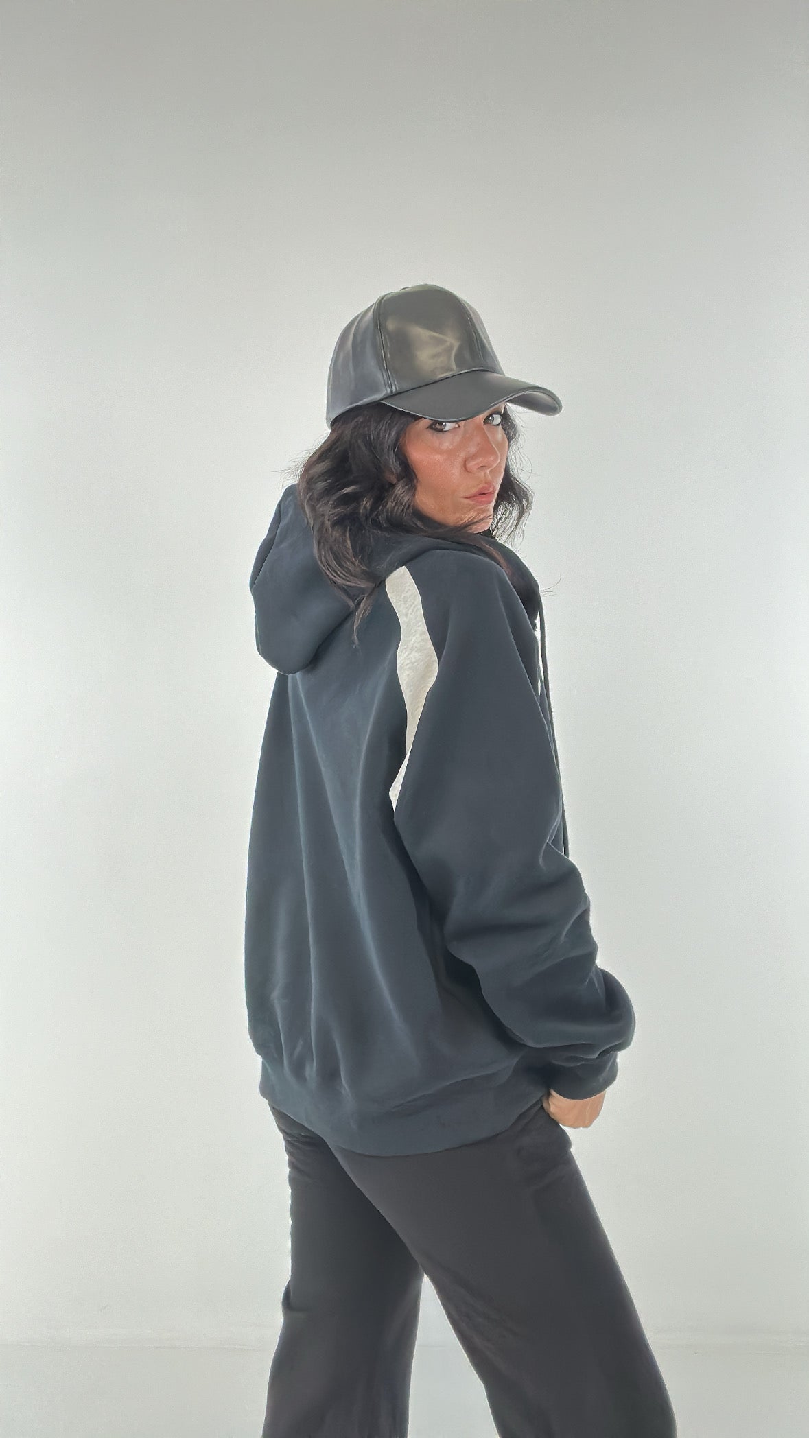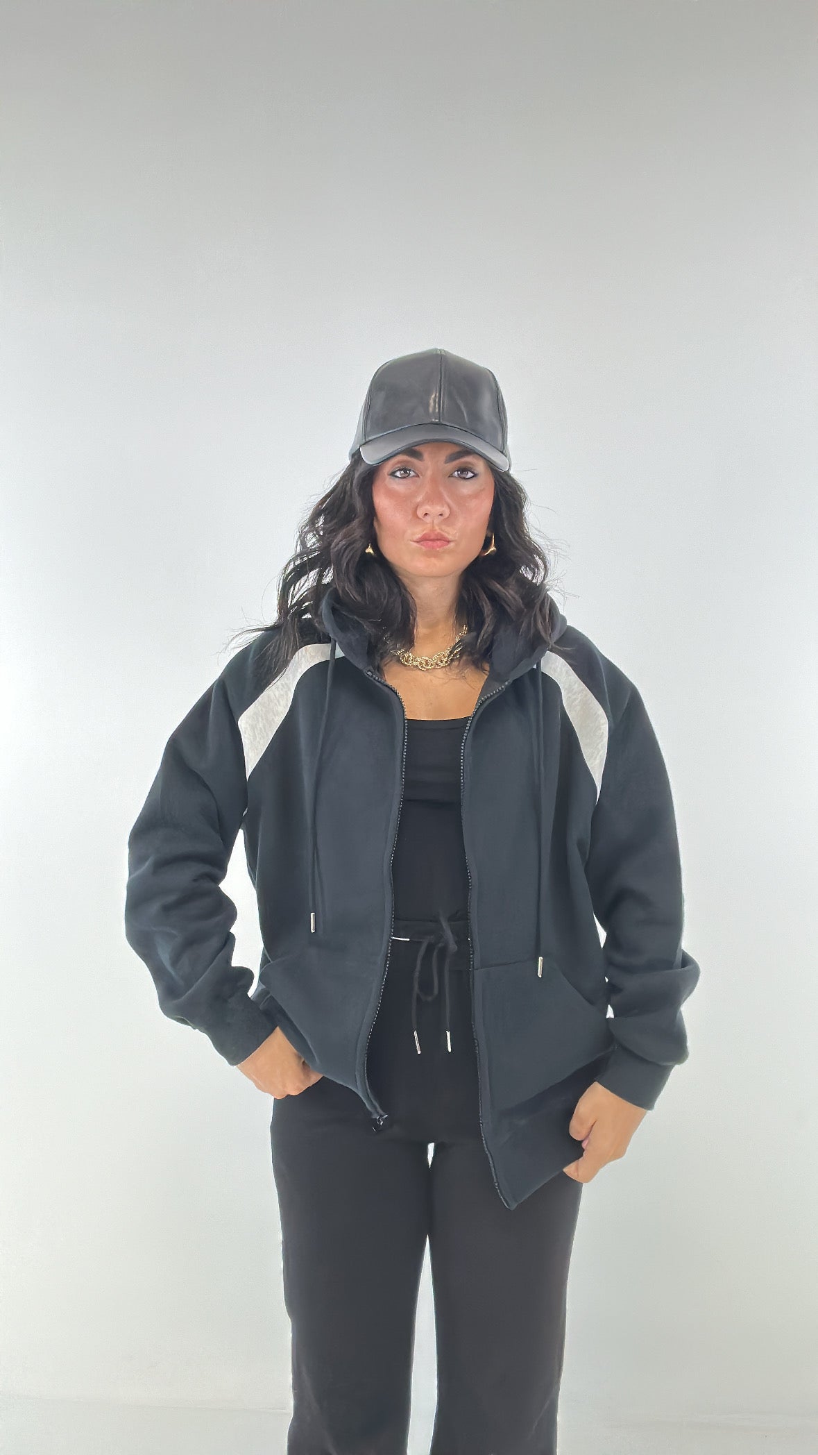 Felpa CAPPUCCIO E CERNIERA - NERO