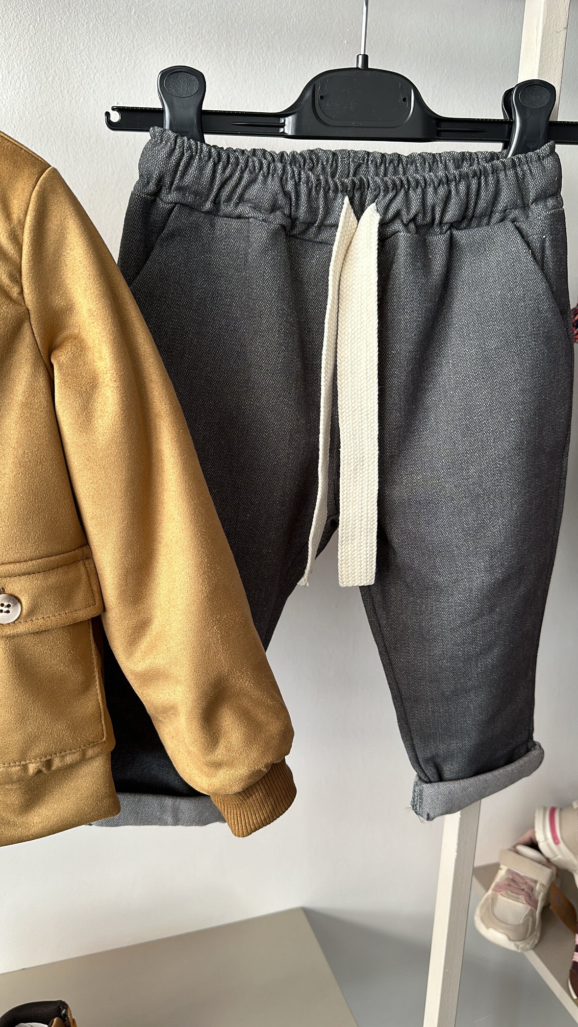 giubbino in camoscio, trapuntato all'interno, felpa e pantalone